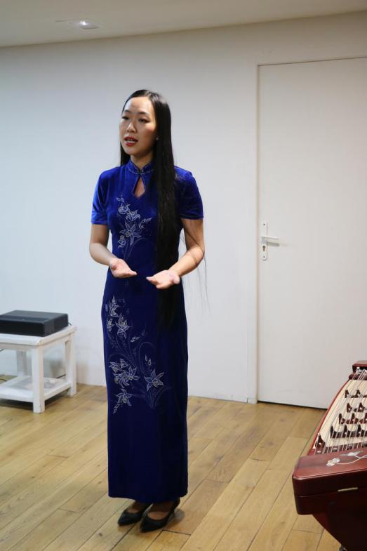 最后,揚琴演奏家王女士演奏了中國傳統古曲,取材于昭君出塞故事的“妝臺秋思”和江蘇民歌“紫竹調”。
