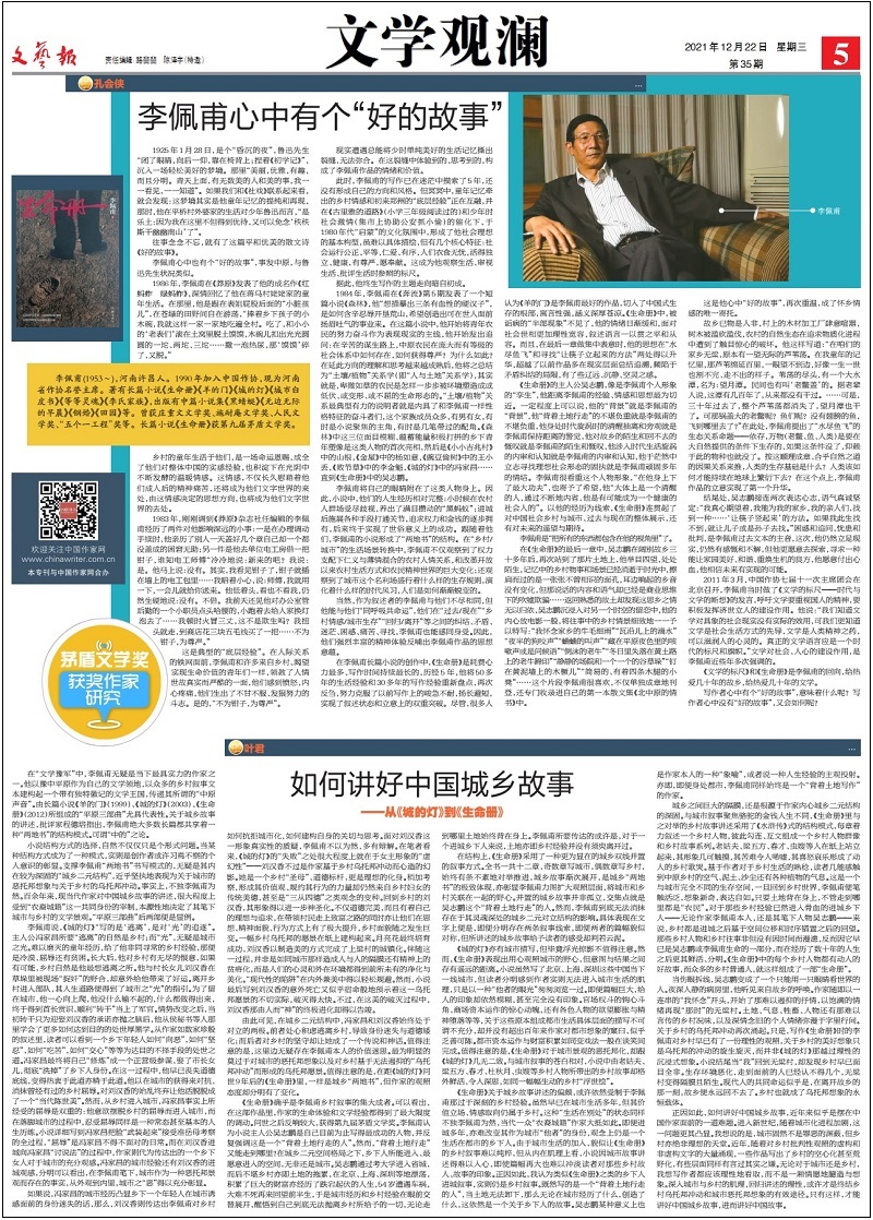 (本文發于中國作家網在《文藝報》所開設的“文學觀瀾”???,“茅盾文學獎獲獎作家研究”2021年12月22日第5版。)