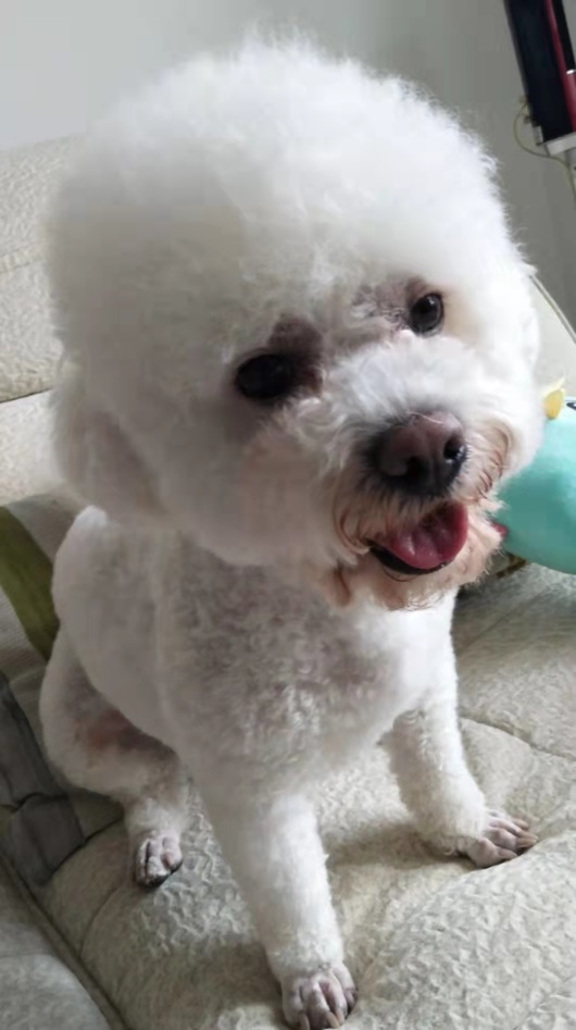 自身最可愛的變化,是可以隨意控制自己的體重,想胖就胖,想瘦就瘦,別人很羨慕,哈哈哈!家里養了一條六歲的狗狗,從大學畢業的時候開始養的比熊犬,叫做小魚兒,從它剛出生就陪我碼字,它的呼吸跟我碼字的節奏是一樣的,我的鍵盤聲要是停下來,他就會警覺地站起來瞪著我,我的監工……