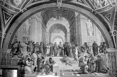 拉斐爾名畫《雅典學院》,畫面正中為柏拉圖和亞里士多德。資料圖片