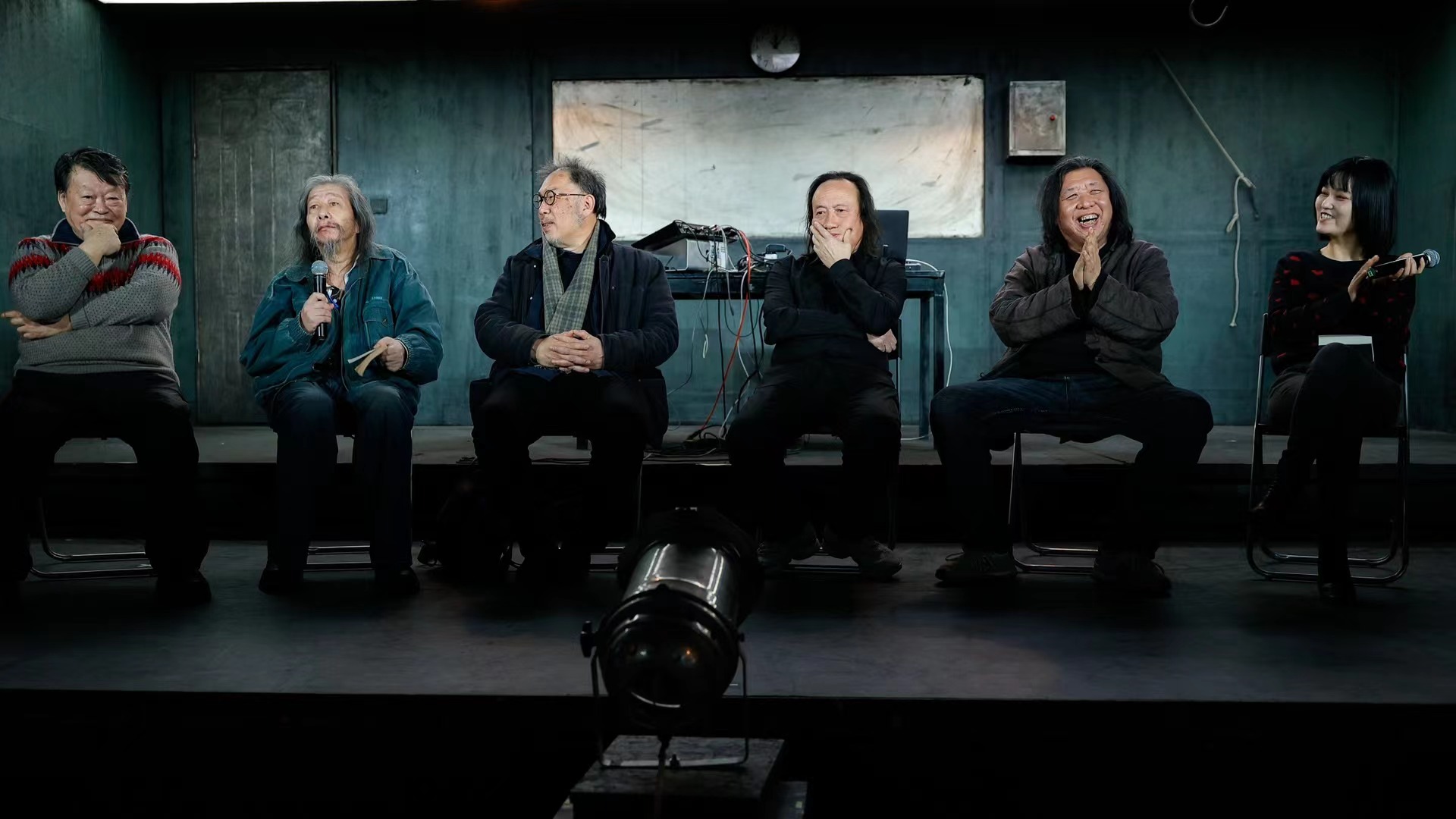 詩集發布現場座談交流。由左至右:唐曉渡、周國強(阿曲強巴)、西川、高星、老賀、戴濰娜
