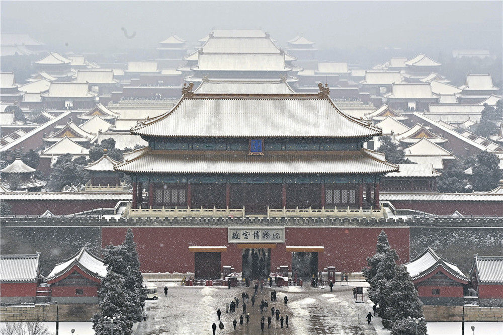 這是2022年1月22日從北京景山公園拍攝的故宮雪景。新華社記者 李鑫 攝