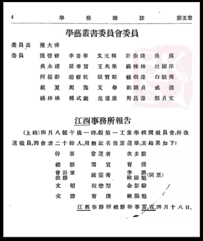 《學藝》所載學藝叢書委員會委員名單