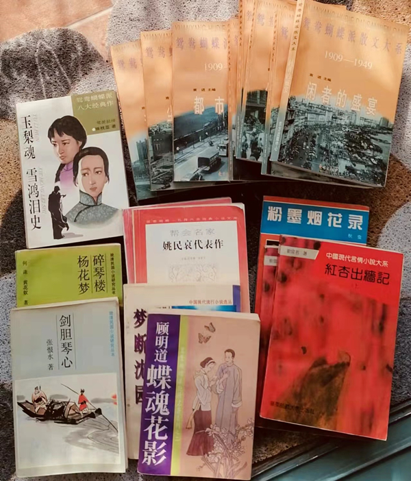 除了武打書,聚奇城三樓舊書店的老板娘還使勁推薦老上海鴛鴦蝴蝶派的言情哀情小說,說是這批八九十年前的海派作家以前也是寫過武俠的,像顧明道、張恨水(京派)、徐卓呆等等,都是《禮拜六》、《紅雜志》、《紅玫瑰》這些通俗文學雜志的專欄???,鴛鴦蝴蝶派里徐枕亞的《玉梨魂》、周天籟的《亭子間嫂嫂》以前倒是有買來讀過,而武俠小說在那個年代也是歸在鴛蝴一派里的。恰好最近好友丁夏老師送了本剛出版的他編輯的漫畫家祖父丁悚先生寫的《四十年藝壇回憶錄》,書中倒有不少鴛鴦蝴蝶派的掌故,看來研究和收藏的品類又要逐漸增加了。