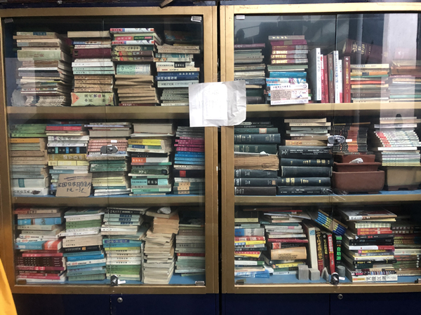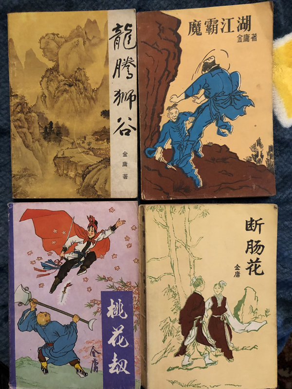 在二樓翻看完幾個小人書攤,再往里面走進去轉到另外一頭電梯打算下樓時,驚喜地又發現邊上一家舊書店,老板娘正在門口整理書堆,旁邊玻璃櫥柜里好幾排的武打書,令最近又重新迷上武俠的我瞬間興奮起來。