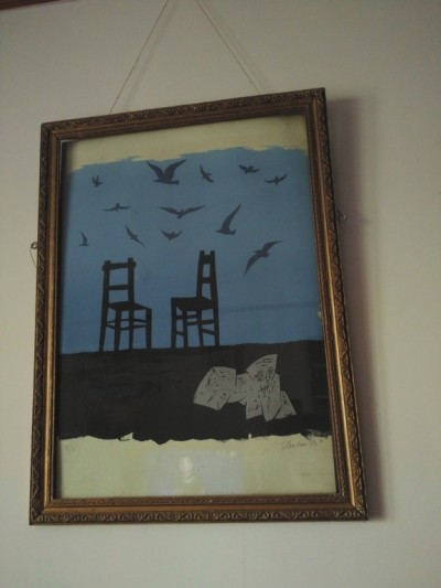 這些天,我常常想起先生家中客廳的墻上掛著的一幅泛著藍色暗光的畫作:兩把椅子在空曠寂寥的地平線上相對而坐,幾張報紙在地下散落,飛鴿在天空中盤旋,仿佛在召喚離別的人們??樟说囊巫?,并沒有人坐在那里,然而,曾經的日子不會遠去,它們仿佛在訴說著不久之前那兩把椅子的主人正相對而坐,敘談著往日的生活……