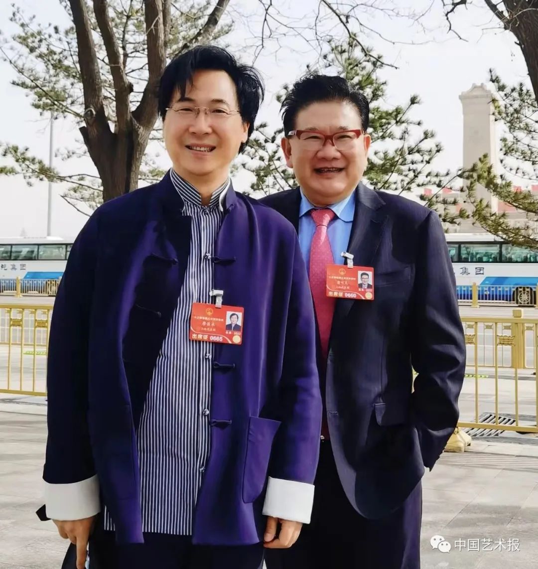 全國人大代表、中國音協副主席、上海音協主席廖昌永(左),全國人大代表、東方衛視主持人曹可凡