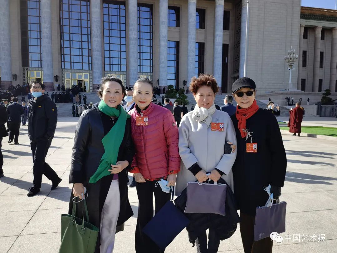 右起:全國政協委員、中國文聯副主席、上海市文聯主席、上海話劇藝術中心國家一級演員奚美娟,全國政協委員、上海戲劇學院表演系教授王蘇,全國政協委員、上海市文聯副主席、上海舞蹈家協會主席、上海芭蕾舞團團長辛麗麗,全國政協委員、民進中央文化藝術專委會副主任、中國歌劇舞劇院原副院長徐麗橋