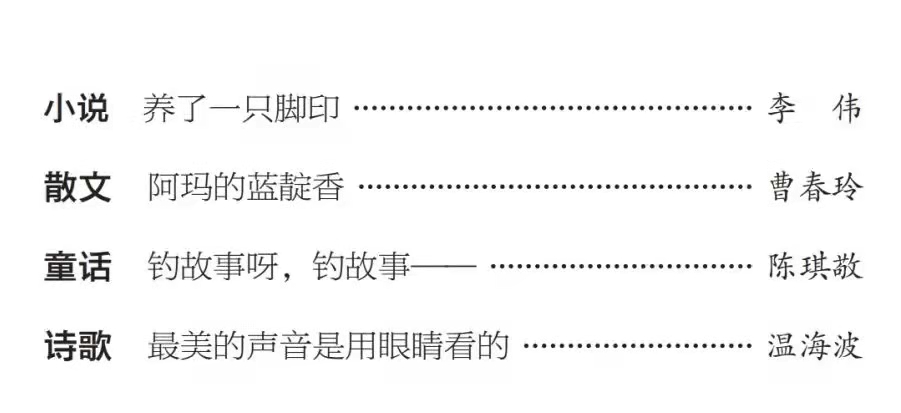 在文字里暢游,把一個個文字組合起來,形成一個個美好的故事的時候,文字就好像變成一個個活著的個體,在演繹我的另一個人生。好故事無處不在,就像我獲獎的作品《釣故事呀,釣故事——》寫的一樣,等著我去捕捉,重新出發!