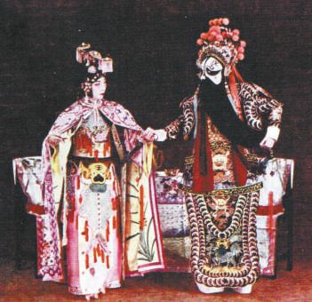 最后再說說武凈這一行當。這一行更是偏行,能主演的戲不多,出的人才就更少。這行是介于武生和架子花臉之間的一行。所扮演的人物,大多是勾臉的武藝精湛超群、性格兇狠乖戾的反面人物?!鞍舜竽谩敝械恼忌綖橥醯姆疵嫒宋?,俗稱“反座子”的,如蔡天化、黃隆基、《白水灘》中的青面虎、《惡虎村》中的濮天雕、《挑華車》中的金兀術、《戰濮陽》和《戰宛城》中的典韋,還有《嘉興府》的鮑自安等。