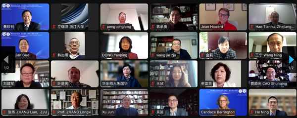 3月18日至20日,由浙江大學外語學院主辦,中世紀與文藝復興研究中心承辦,《浙江大學學報(人文社會科學版)》協辦的“跨越·比較·匯通:外國文學與比較文學高端論壇”在線上順利召開。哥倫比亞大學教授Jean E. Howard、香港城市大學教授張隆溪、中國人民大學教授楊慧林、上海交通大學教授王寧、四川大學教授曹順慶、中國社會科學院研究員陳眾議、北京外國語大學教授金莉、上海外國語大學教授查明建、中康涅狄格州立大學教授Candace Barrington等近四十位國內外專家學者應邀參與了論壇。浙江大學副校長何蓮珍為論壇開幕式致辭。浙江大學文科資深教授許鈞擔任論壇的學術委員會主席。會議于18日下午、19日上午和下午共舉行了三場論壇,二十四位與會學者做了主題發言。會議同期在B站進行了直播,四千多人次在線聆聽,惠及校園內外。論壇線上合影