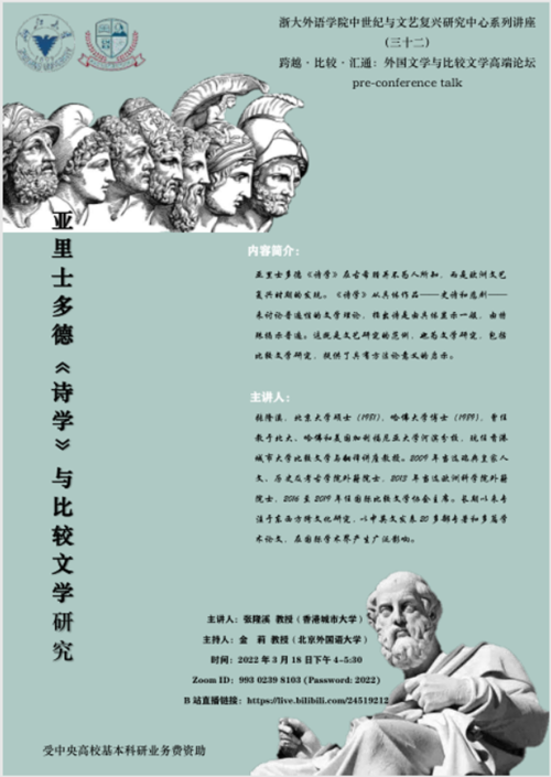 張隆溪教授演講的題目是“亞里士多德《詩學》與比較文學研究”