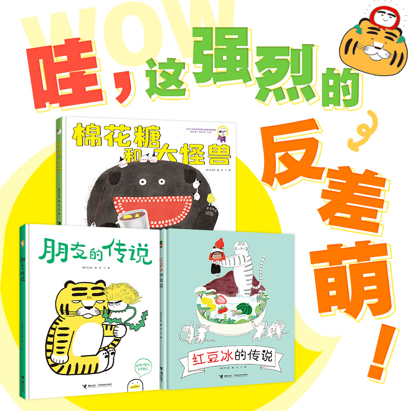 還有“2021年意大利博洛尼亞童書展最佳童書獎(漫畫類低齡段大獎)”得主《棉花糖和大怪獸》中小小的棉花糖和巨大的大怪獸。大怪獸看起來好兇哦,可是,他真的像外表那么嚇人嗎?棉花糖看起來軟萌軟萌的,可是,只要他們團結起來就能干大事兒