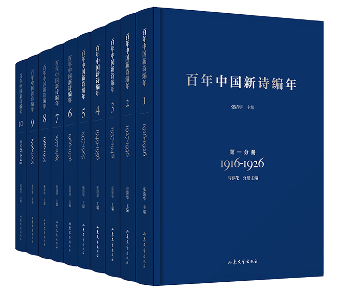 北京師范大學文學院教授張清華主編的《百年中國新詩編年》是對1916年至2015年一百年間中國新詩最重要、最優秀作品的集中展示。“編年”共計十卷,以十年左右時間跨度為一卷,通過大規模的資料搜集、考辨、鉤沉、整理和編排,依寫作或初發表的時間先后為序進行排列,從而形成一個狀貌相對完整、內容相對豐腴的中國新詩地理圖志,以努力接近百年新詩真實發展狀況的學術體例,呈現新詩創作的豐富性與多元性。從《百年中國新詩編年》中,亦可以看出中國新詩自誕生至今所走過的歷史道路及其主要成就、整體面貌。