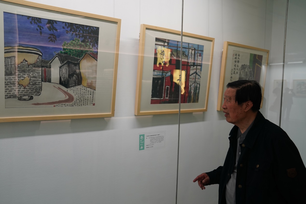 老舍、胡絜青夫婦愛畫、賞畫、藏畫、習畫,與美術大師交往密切,舒家家學中素有美術淵源,子女也在耳濡目染中獲得了許多生動、深刻的美術教育。舒乙先生六十歲后重拾畫筆,創作出一幅又一幅色濃情真、個性鮮明、蘊含文學氣質的繪畫作品,他善于發現生活之美,畫作構思新穎、富有情懷、別有意趣。舒乙先生曾說自己畫畫就是想把文字不好表達的內容用畫來詮釋,“自己左手是字,右手是畫”。座談會結束后,部分與會嘉賓參觀了“舒乙的畫”特展,在精選出的46幅舒乙繪畫作品前駐足停留,仿佛回到與畫作者共同經歷的舊日時光。
