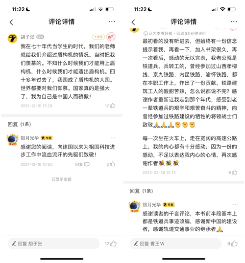虞婧:我看見七貓小說閱讀APP上有很多讀者評論,其中好多讀者就是這個行業的從業人員或者家屬,小說走進了工業人的心靈世界,有很多條您都回復了??吹剿麄兊脑u論,您有什么體會,有沒有什么印象深刻的評論,或者比較尖銳的批評意見?