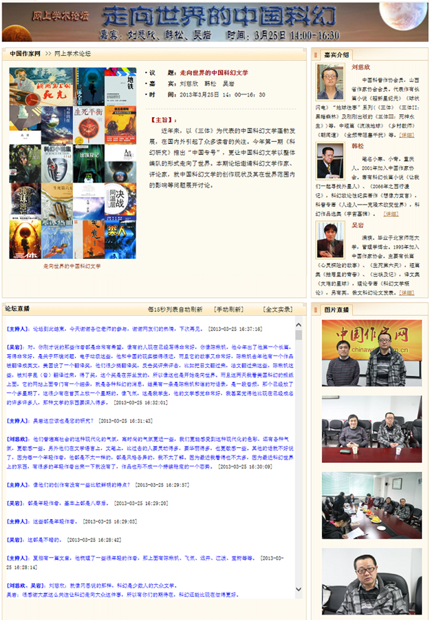 2013年中國作家網舉辦網上學術論壇
