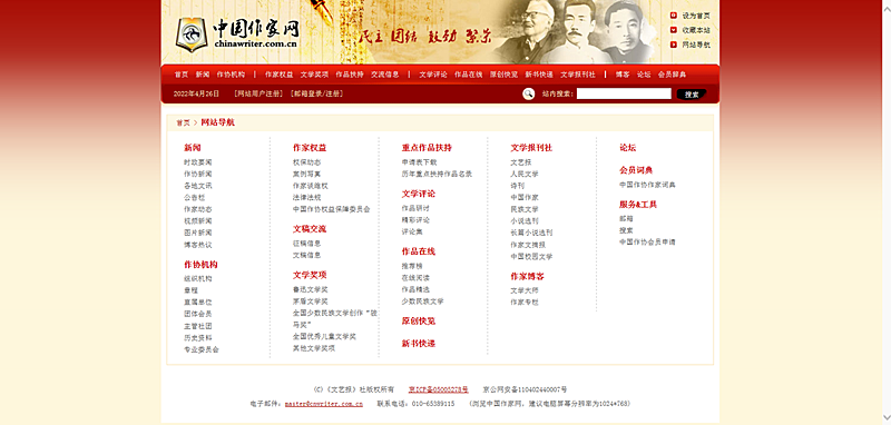 2016年改版前,中國作家網網站導航頁面