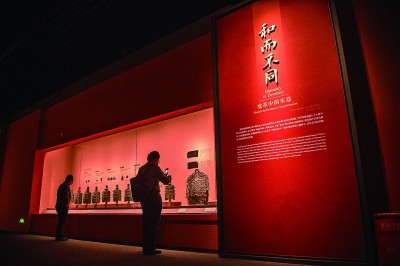5月18日,觀眾在“龢:音樂的力量——中國早期樂器文化”展上觀賞文物。