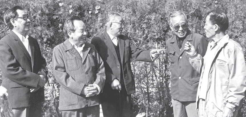 1991年中秋節,文壇“五戰友”在山西省作家協會機關大院內親切交談
