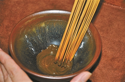 趙盼兒在第一集還表演了“茶百戲”,用一根小竹棍兒蘸著茶粉,在黃綠色的茶湯泡沫上畫畫。這種表演是福建茶人章志峰先生在二十年前根據自己的理解“復原”出來的,跟宋代文獻里的記載并不一致。
