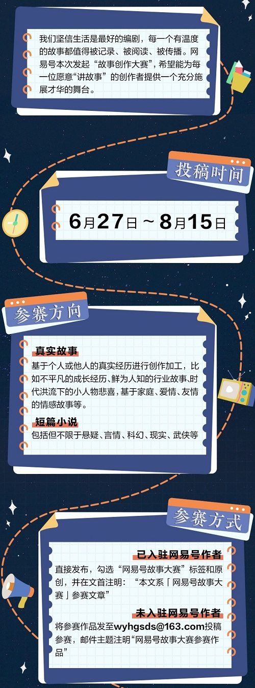 我們堅信生活是最好的編劇,每一個有溫度的故事都值得被記錄、被閱讀、被傳播。網易號本次發起“故事創作大賽”,希望能為每一位愿意“講故事”的創作者一個充分施展才華的舞臺,網易故事創作大賽正式開啟,獎金最高5000元!