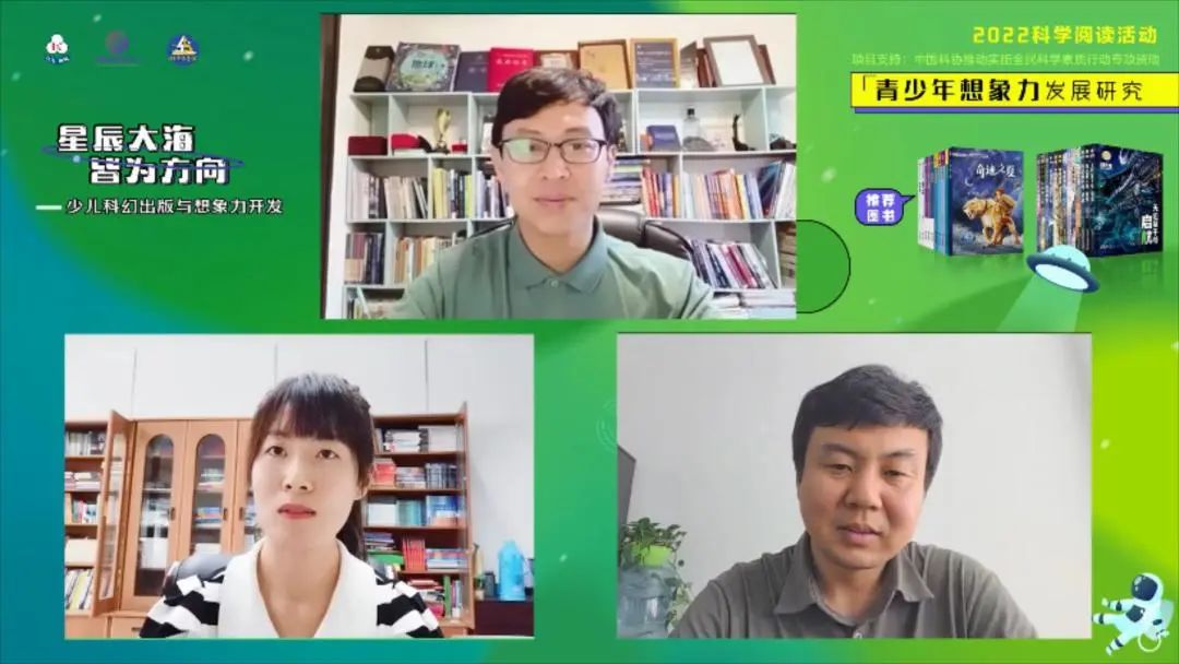 6月30日,由中國科普作家協會、中國科幻研究中心主辦,《科學故事會》雜志、馬傳思科幻工作室承辦的“2022科學閱讀活動”在線上舉行。本場活動邀請大連出版社副社長、“大白鯨”優秀作品編輯張斌和安徽少年兒童出版社副編審、科幻編輯丁倩做客直播間,為大家帶來“星辰大海,皆為方向——少兒科幻出版與想象力開發分享會”?;顒油ㄟ^北京科技報社、大連出版社、中國科普作家協會微博和B站直播間同步播出,線上觀看總人次超過35萬。