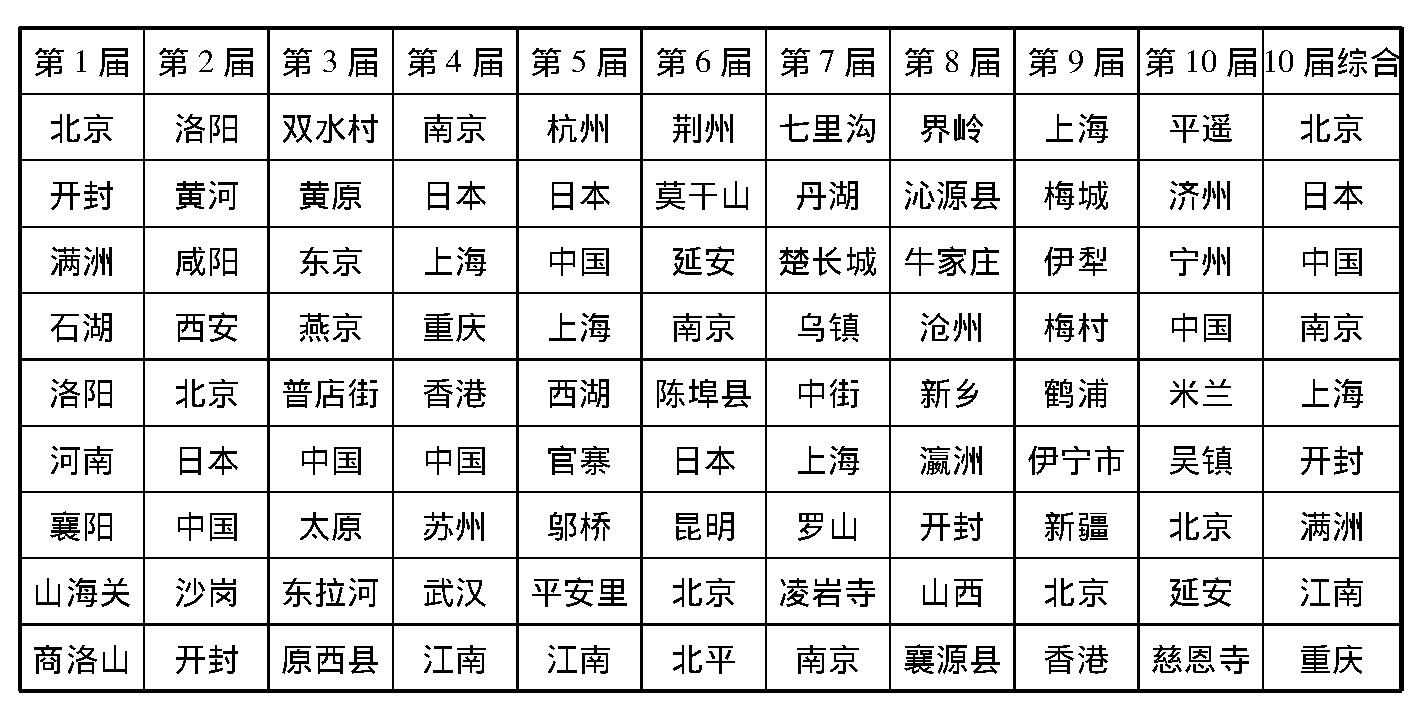 我們在對歷屆茅盾文學獎獲獎作品中的“地理高頻詞”進行了逐屆統計與綜合統計后發現:一方面,“中國”“日本”兩個國名出現頻率較高;另一方面,與河南(包括“河南”“開封”“洛陽”“咸陽”等)、陜西(包括“西安”“商洛山”“雙水村”“黃原”“東拉河”“原西縣”“延安”等)、江蘇(包括“南京”“蘇州”等)、北京、上海幾個省或直轄市相關的地理名詞出現頻率較高。14具體而言,“日本”出現頻率較高多是因為前文中所述的大量革命歷史題材小說,尤其是描寫抗日戰爭的小說中都不可避免地對其有所提及。至于河南、陜西、江蘇、北京、上海等地的地域名詞多次出現,則和作家作品的地方性書寫密不可分。