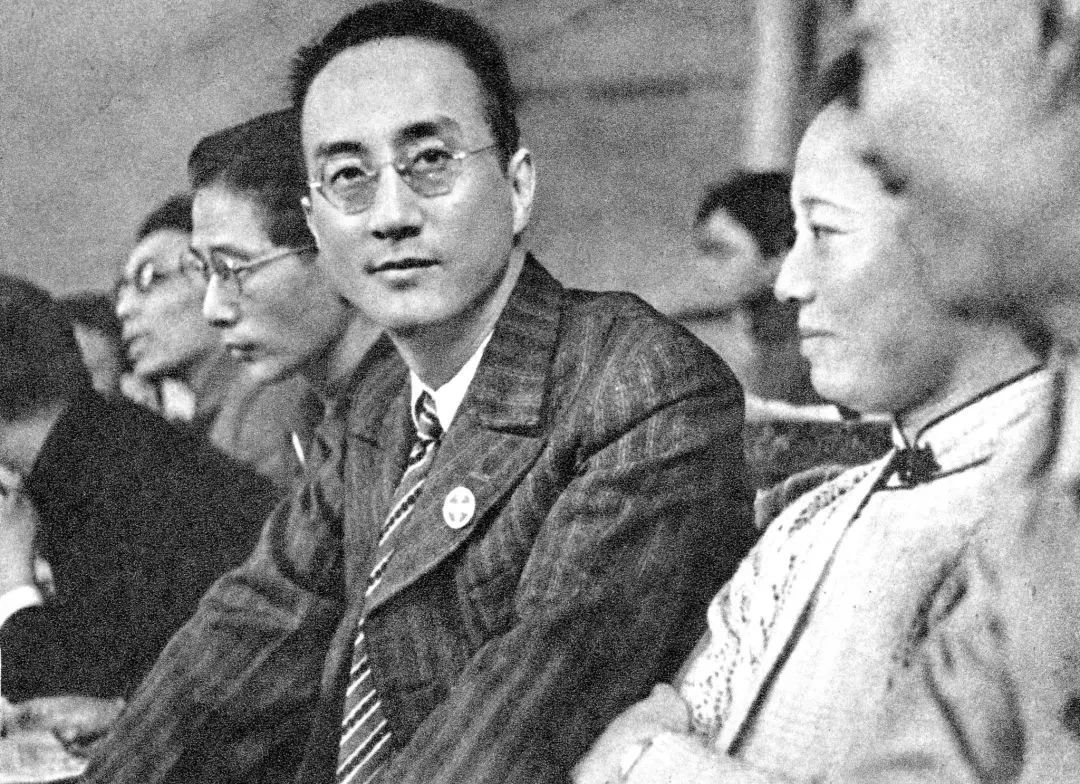 1939年10月,鄒韜奮(中)與夫人沈粹縝(右)參加在重慶舉行的紀念魯迅先生逝世三周年大會