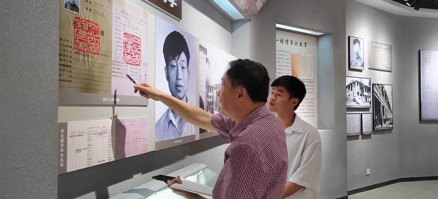 作家蔡飛躍在林俊德科學家精神教育基地采訪相關人員