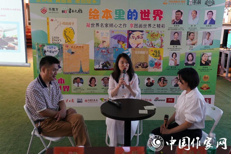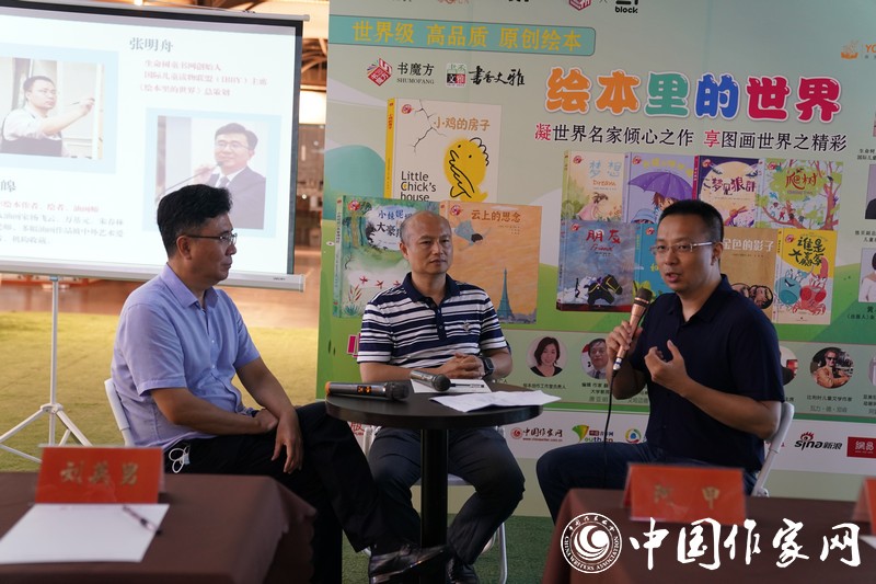 繪本在創作者的眼中,又是怎樣一番面貌呢?針對“作者眼中的繪本”這一話題,張明舟、阿甲、劉皞進行了深入探討。認為繪本是文學與繪畫結合的一門兒童藝術,應以孩子的目光看待世界,用世界的目光回望童年。