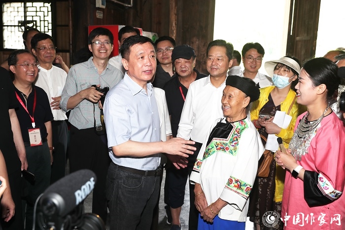 7月30日,中國作協黨組書記、副主席張宏森帶領中國作協黨組書記處同志、主席團成員、各團體會員單位負責人、各單位各部門負責人等,赴十八洞村實地調研、采訪。大家走進梨子寨感恩坪廣場、主題郵局、村鎮銀行、幸福人家,聽村民們滿懷深情講述起總書記同他們親切交談、共商脫貧大計的場景,看苗家姑娘用動聽的歌聲唱起《我和我的祖國》,身入心入情入實地感悟十八洞村發生的翻天覆地的變化。