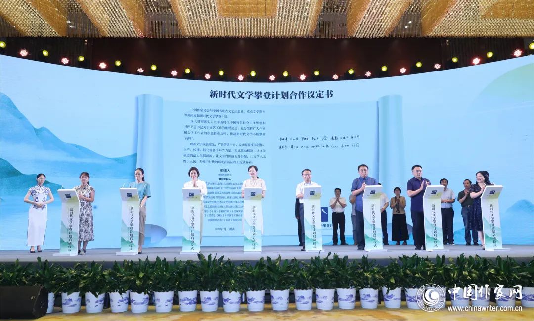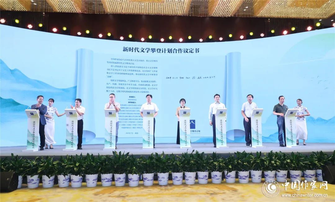 7月31日,中國作家協會“新時代文學攀登計劃”在湖南益陽啟動。中國作協主席、中國文聯主席鐵凝,湖南省委常委、宣傳部長楊浩東出席并致辭。中國作協黨組書記、副主席張宏森主持啟動儀式。湖南省委宣傳部常務副部長蔣祖烜,中國作協副主席李敬澤、吳義勤、陳彥,書記處書記胡邦勝、邱華棟、施戰軍、鄧凱,湖南出版集團黨委書記彭玻、湖南益陽市委書記瞿海,中國作協第十屆主席團成員、各團體會員單位負責人、各單位各部門負責同志,重點文藝類出版社、文學期刊負責人等出席活動。