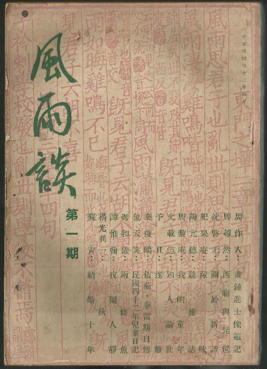 刊有陶亢德《談雜志》的《風雨談》雜志第一期