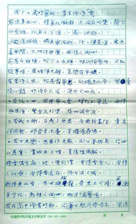 由此可知,楊憲益生前并未寫過中文自傳,然而,2015年筆者卻有幸得遇一批楊老親筆所書的中文自傳手稿!這批手稿,原為二十多年前楊老寫給其第一本中文傳記作者鄒霆,為其家屬釋出。