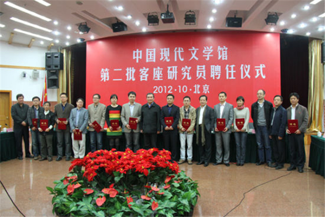 2012年10月22日,黃平、金理、劉濤、李丹夢、傅強、張麗軍、曾一果、何同彬、郭冰茹、劉大先、劉志榮、張立群十二人獲聘中國現代文學館第二屆客座研究員。郭冰茹(右四)在現場。