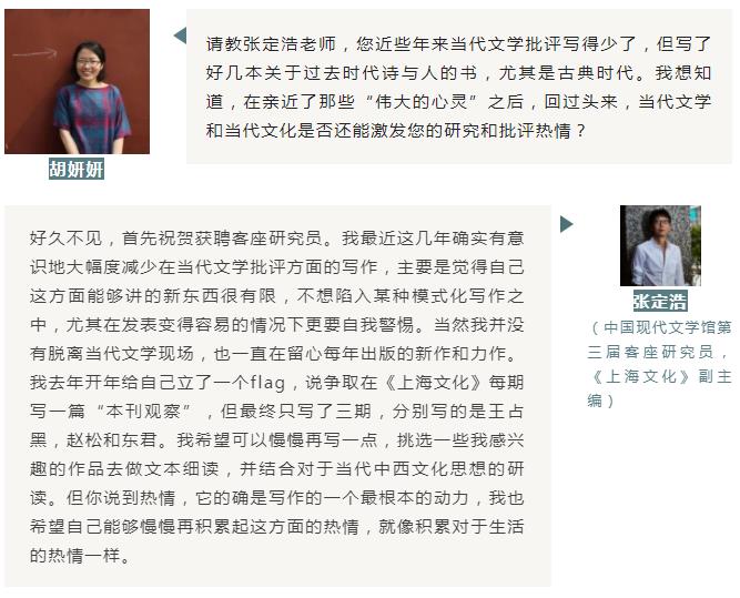 胡妍妍:這一制度有力扶持和培養了一批青年學者和青年批評人才,以往數屆客座研究員的學術成果和批評實績就是最好的證明。它鼓勵當代眼光和青年視角,鼓勵文學研究和文學批評向著廣闊的社會現實敞開,鼓勵及物的、有問題意識的、有交流和交鋒的學術探討,并且為青年學者和青年批評人才之間的取長補短、協作進步提供平臺。它已經并將持續不斷地給當代文學批評和研究注入新的活力。