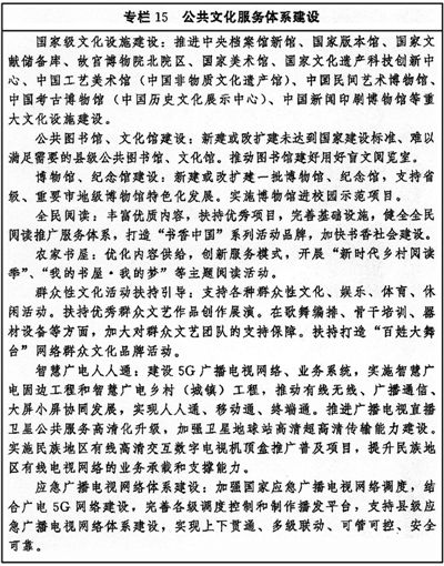 推進國有文化企業轉型升級,優化資源配置和布局結構,打造知名文化品牌和企業集團。鼓勵、支持、引導非公有資本依法進入文化產業,保護民營文化企業產權和企業家權益。積極支持中小微文化企業發展,鼓勵走專精特新發展路子。加快發展數字出版、數字影視、數字演播、數字藝術、數字印刷、數字創意、數字動漫、數字娛樂、高新視頻等新型文化業態,改造提升傳統文化業態,促進結構調整和優化升級。推動文化與旅游、體育、教育、信息、建筑、制造等融合發展,延伸產業鏈。建設國家文化產業發展項目庫、全國廣播電視和網絡視聽產業公共服務平臺。(見專欄16)
