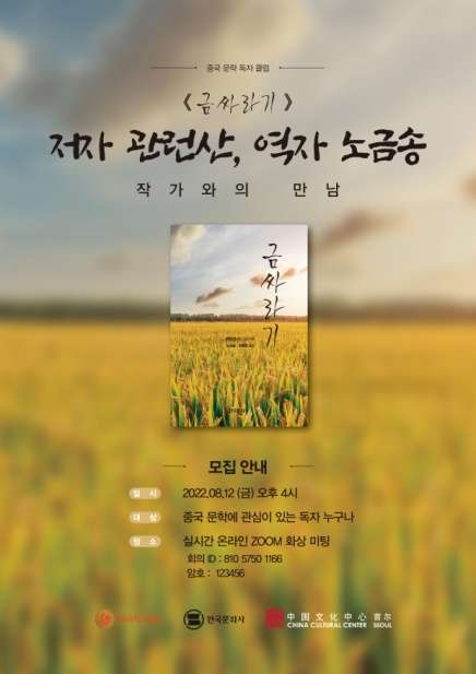 2022年是中韓建交30周年,也是“中韓文化交流年”。值此重要時刻,韓國“中國文學讀者俱樂部”首場活動“綠水青山就是‘金山銀山’——關仁山《金谷銀山》韓文版分享會”于8月12日舉辦。本場活動由中國作家協會主辦,中國圖書進出口(集團)有限公司與韓國文化社聯合承辦,首爾中國文化中心協辦。中國作家關仁山、《金谷銀山》韓文版譯者魯錦松、韓國文化社營銷部部長趙正憲以及對中國語言、文化感興趣的當地編輯、譯者、大學生等各界人士參加活動,參會人數達40人。