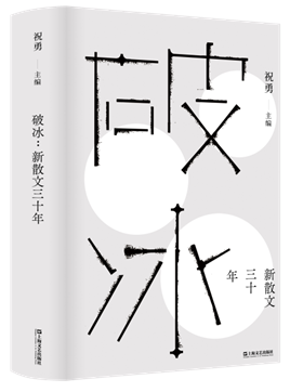 《破冰:新散文三十年》是由祝勇主編的一部獻給“新散文”三十年的紀念集,收錄鐘鳴、于堅、馮秋子、寧肯、張銳鋒、蔣藍、祝勇、周曉楓八位“新散文”代表作家的代表篇目,以此描摹“新散文”創作三十余年的吉光片羽?!靶律⑽摹鄙钌罡仓腥A大地,行走于華夏自然山川,跋涉于社會現實生活,在“新散文”里,我們看得到孔子、莊子的影子,也看得到卡夫卡、博爾赫斯、曼德爾斯塔姆的影響,更看得到“新散文”作家們復雜、迷離的主體世界?!靶律⑽摹蓖嗜チ水敵醯男落J青澀,成長為一個強大的精神主體,生成了一個具有超大能量的內宇宙,代表著一種新的觀念、方向、高度,是中國散文通向未來的道路,也是中國文學在經歷先鋒文學的青春沖動之后的一次再出發。