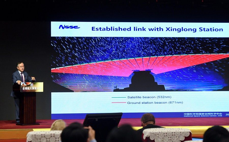 吳季在2017年全球航天探索大會上作題為《中國空間科學衛星計劃》的報告。新華社記者 陳曄華 攝