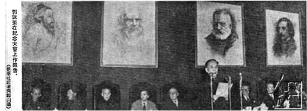 1953年9月27日,北京中南海懷仁堂,郭沫若在世界四位文化名人紀念大會上發表演說