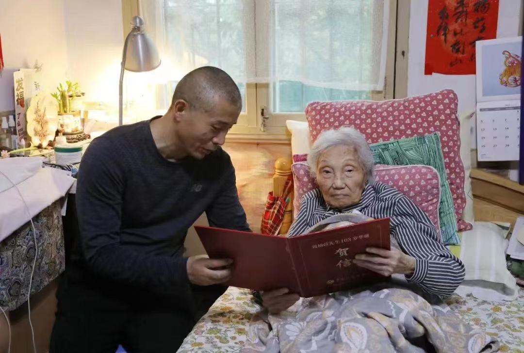 “我們前兩天就該來看你了。晚了幾天才來,我們很抱歉?!碑咃w宇一進門就向楊苡遞送鮮花,解釋說前段時間汪興國書記參加中國作協在連云港舉辦的培訓班,因為疫情原因被封了一個禮拜,昨晚剛回南京,今天就立刻過來為她補過103歲生日。楊苡不在意地擺擺手,“那有什么關系,我從來不愛過生日?!?/p>