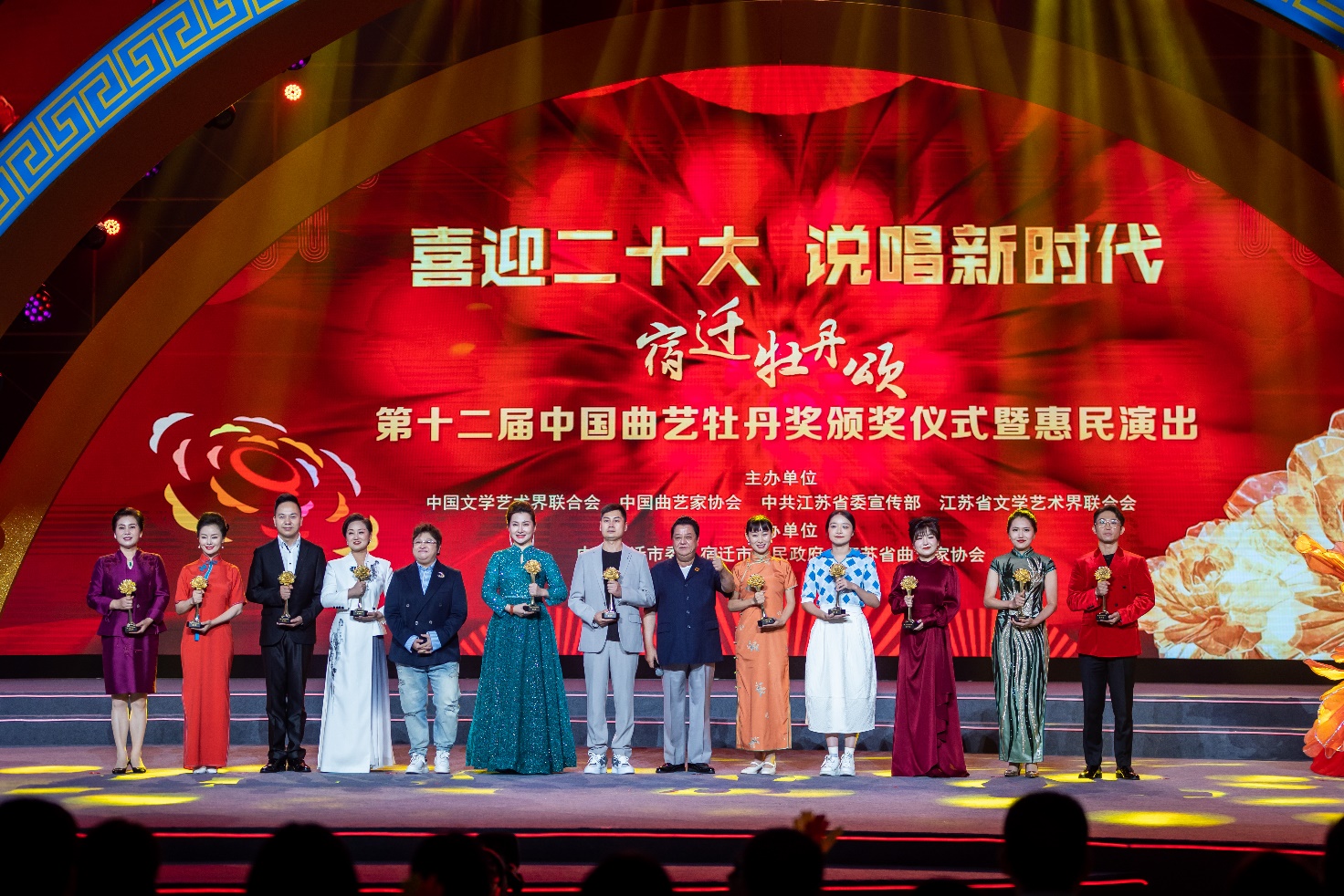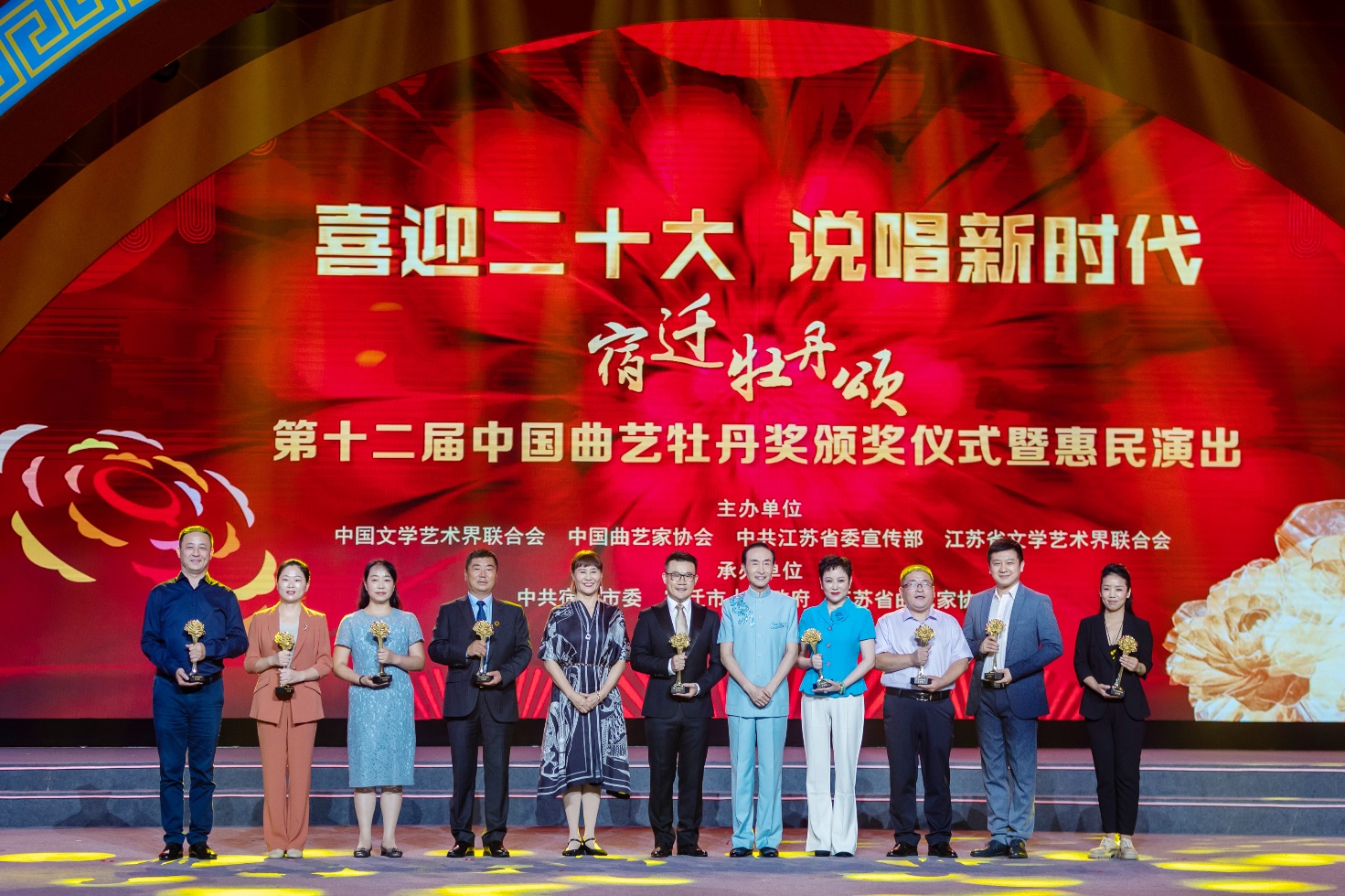 9月16日晚,由中國文聯、中國曲協、江蘇省委宣傳部、江蘇省文聯共同主辦的“喜迎二十大 說唱新時代”宿遷牡丹頌——第十二屆中國曲藝牡丹獎頒獎儀式暨惠民演出在江蘇宿遷舉辦。中國文聯黨組書記、副主席李屹,中國文聯黨組成員、副主席董耀鵬,江蘇省委常委、宣傳部部長張愛軍參加了頒獎儀式。參加儀式的還有中國文聯辦公廳主任鄧光輝,中國文聯理研室主任周由強,中國曲協主席姜昆,中國曲協分黨組書記楊發航,中國曲協副主席烏力吉圖、馮鞏、閆淑平、吳文科、范軍、種玉杰、翁仁康、盛小云、籍薇,中國曲協分黨組副書記曲華江,中國曲協副秘書長黃群,江蘇省委宣傳部副部長徐寧,江蘇省文聯黨組書記水家躍,中國書法家協會主席、江蘇省文聯副主席孫曉云,江蘇省演藝集團黨委書記鄭澤云,江蘇省文聯副主席劉旭東、劉軒明。