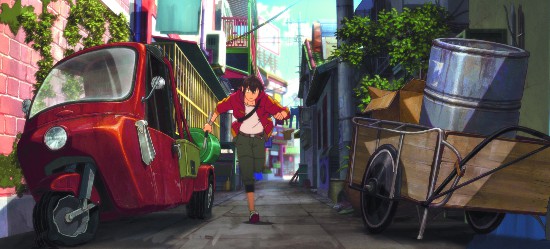 影片畫面精致,色彩飽滿,元素眾多,鏡頭視角和遠景近景的快速切換讓打斗場景極為華麗。畫面以二維為主,高速運動的場景采用了“三渲二”的制作技術,使得畫面在保留了精致絢麗外,還兼顧了動作場景的流暢性。在民居場景方面,展現了大量具有中國風特色的建筑、服飾、美食、工具,日常場景也很有中國百姓生活的煙火氣;在工業場景方面,工業區管道如叢、煙囪林立,傳送帶轟隆作響,加上麥當東拼西湊的小飛艇,展現出蒸汽朋克的機械之美;反派極簡主義風格的辦公室及巨大的星形武器,則展現出明確的未來科幻感;而終戰時出現的如遠古怪獸的鋼鐵巨龍,又混雜著遠古圖騰與人類科技造神的神秘與恐怖。