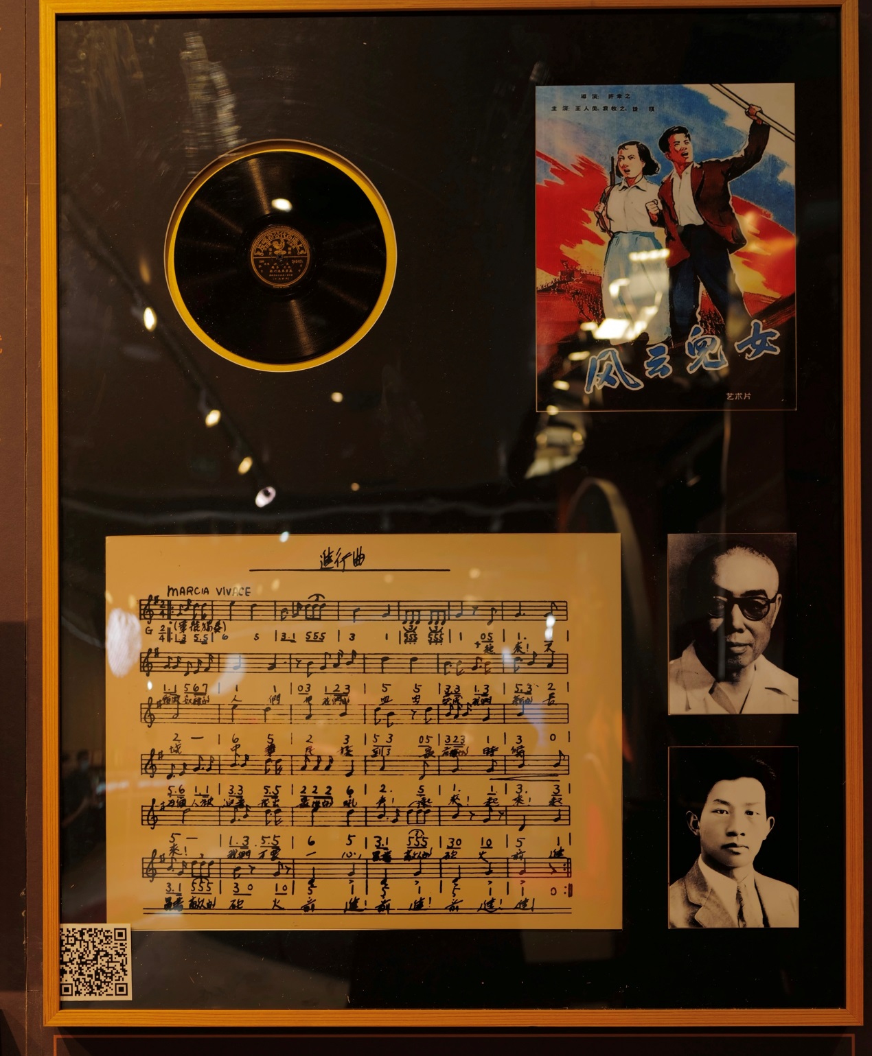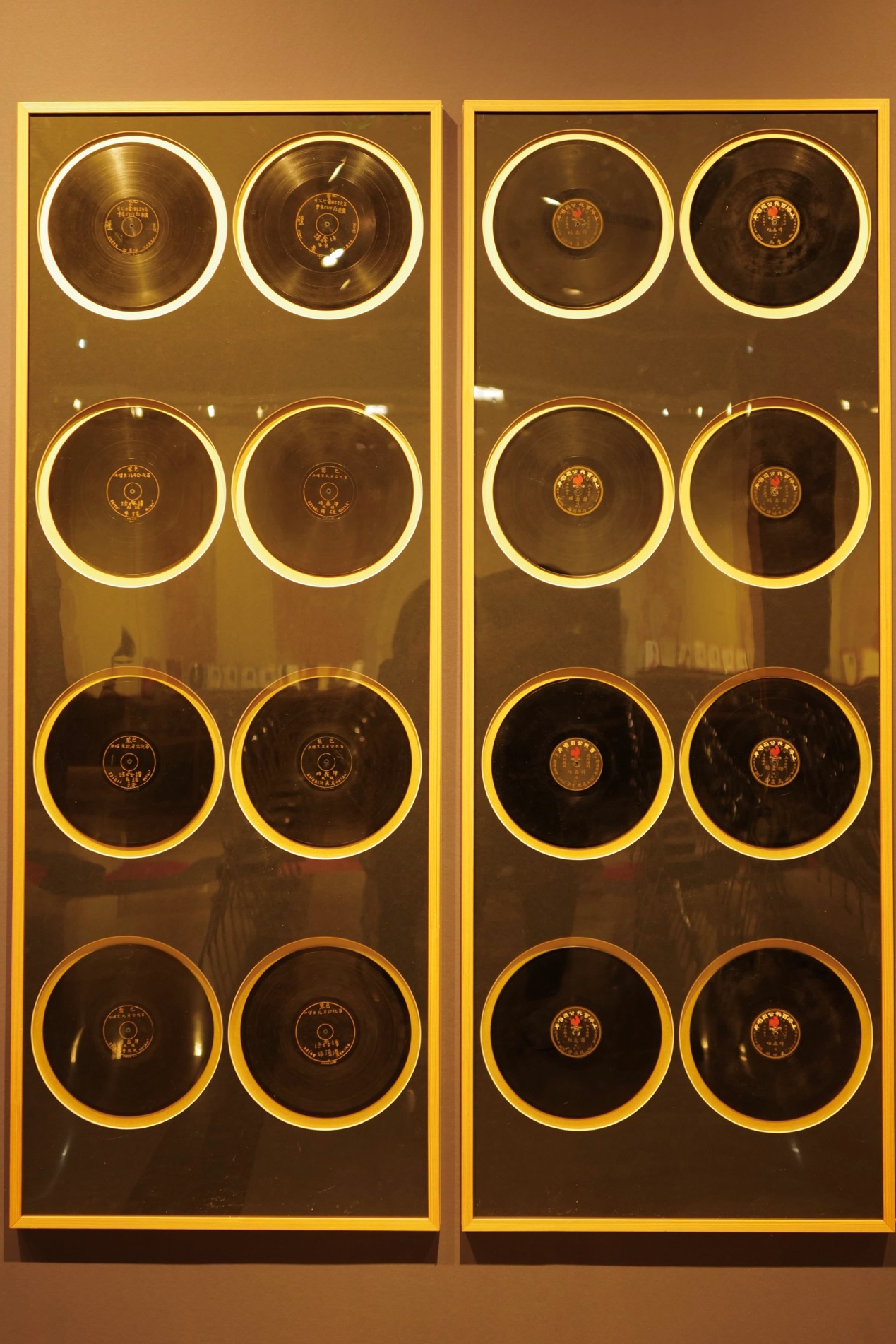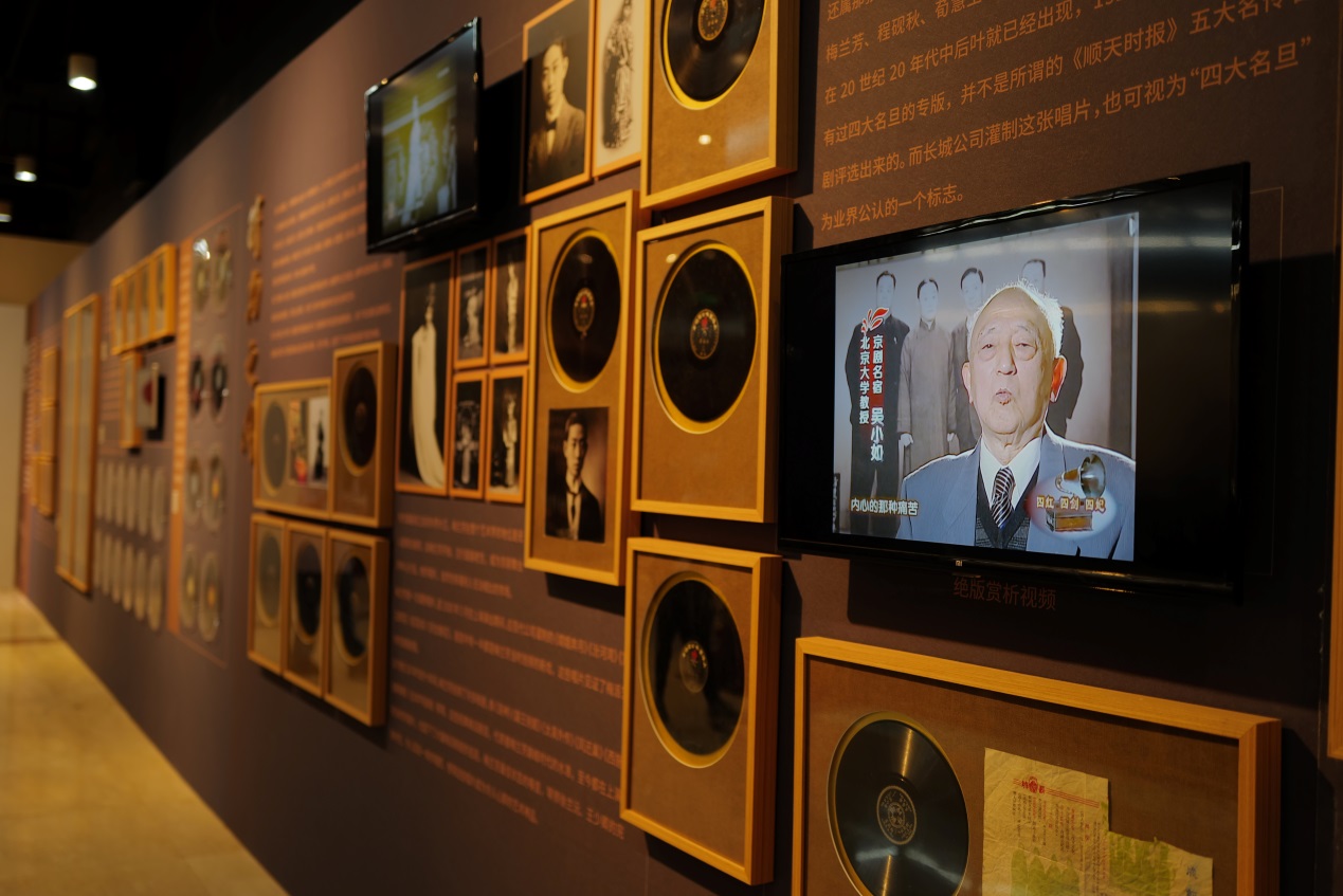 展品中第一張唱片,因其片心圖案為帶翅膀的小天使,被稱為“小天使唱片”,它于1903年灌制,是目前已知的最早一期中國本土黑膠唱片。1904年在中國本土錄制的龍紋唱片,是中國有聲歷史的重要實物,代表著最早期中國唱片的制式與樣貌。京劇譚派創始人譚鑫培先生的“七張半”唱片,能集齊一套已十分難得,此次則展出“手刻”與“紅公雞”兩套完整版本,堪稱展覽最大亮點。而由梅蘭芳、尚小云、程硯秋、荀慧生于1932年共同錄制的《四五花洞》唱片,是四人唯一合作作品,且正是此次錄制使得“四大名旦”稱號得以產生。展覽另一大亮點展品是錄制于1935年5月的《義勇軍進行曲》首版唱片,歌曲蘊含了中國人民的偉大愛國主義精神。