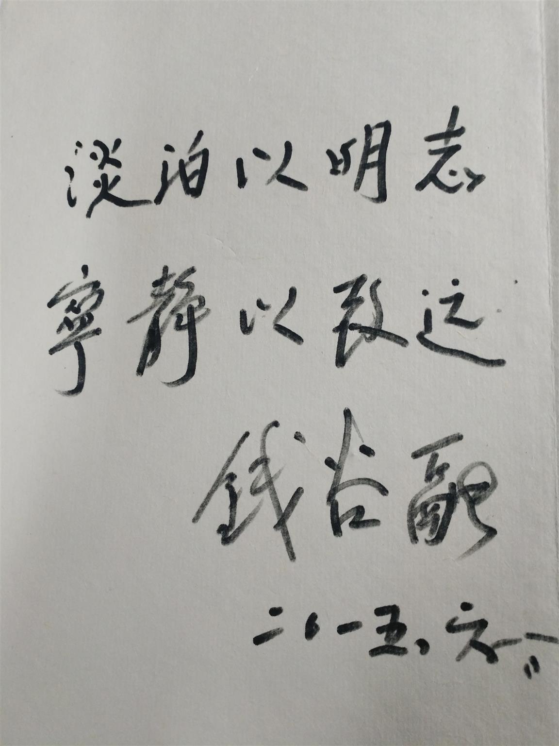我想錢老一定是看出我身上的問題,想以此句來警醒我。他大概是希望我這位晚輩在自己的人生路上,能夠再安靜一些,再淡泊一些。有這樣的心性,我做事情才可能會有所得。