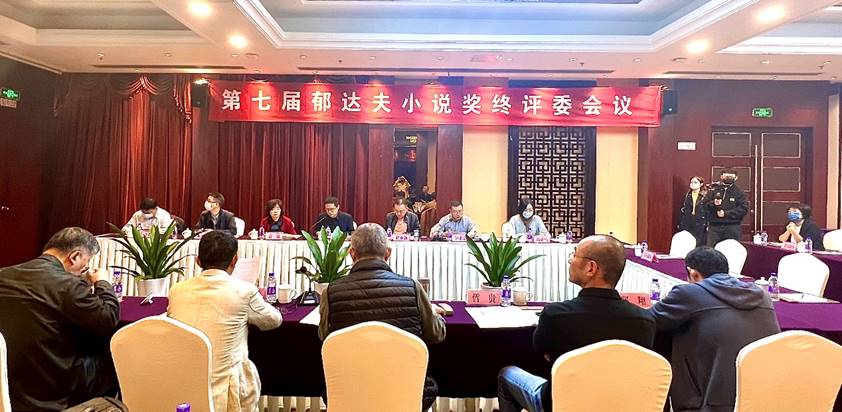由于疫情防控等原因,部分評委無法抵達現場,本次會議采取線上線下相結合的方式進行。終評委仍由著名作家、學者和重要文學刊物主編組成,主任為李敬澤,副主任為艾偉,八名成員(按姓氏筆畫順序)為葉兆言、畢飛宇、孫甘露、李洱、阿來、陳東捷、袁敏、程永新。經過兩個月的審讀,終評委在現場討論通過了《第七屆郁達夫小說獎獲獎作品投票產生辦法》,并就終評備選的作品發表審讀意見,展開實名投票決選,選出最終結果。