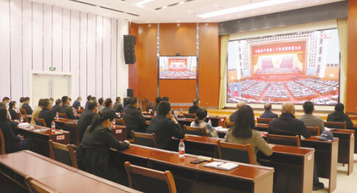 黃河出版傳媒集團組織黨員干部、職工收看黨的二十大開幕會。 黃河出版傳媒集團 供圖
