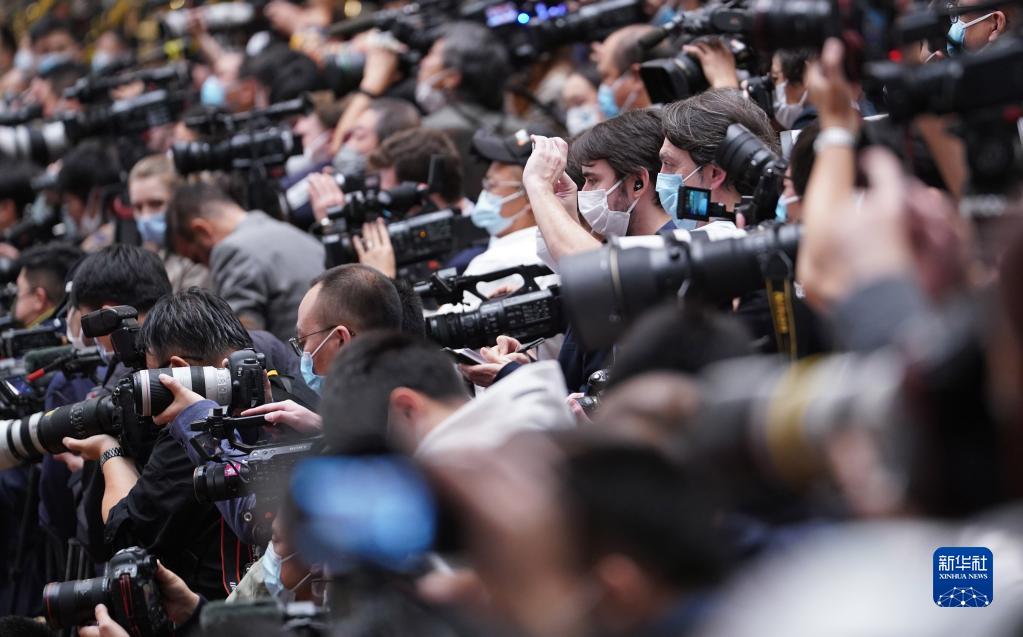 10月22日,中國共產黨第二十次全國代表大會閉幕會在北京人民大會堂舉行。這是記者在采訪拍攝。 新華社記者 陳曄華 攝